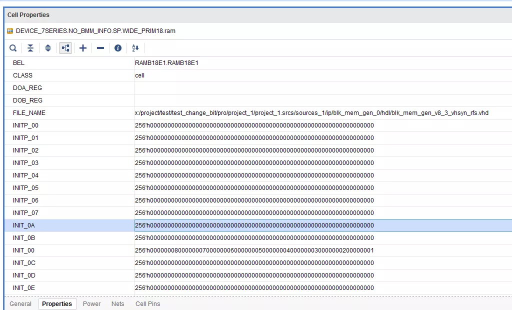 在properties界面,可以直接修改初始化文件(需要熟悉原语,其初始化方式与RAMB18E1相同);