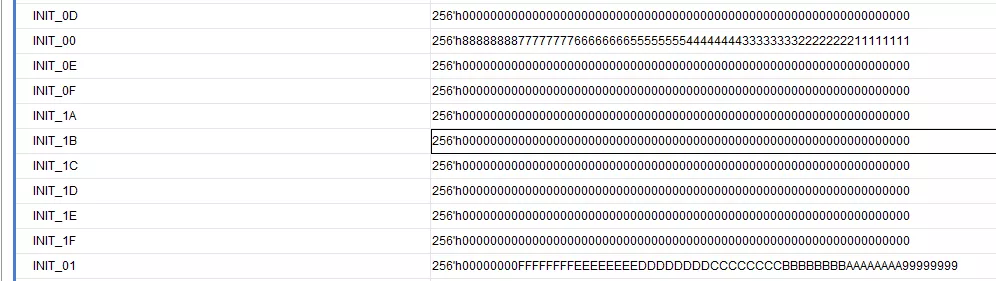 在主工程中打开实现设计,按照相同的方式可以找到对应的RAM与初始化值,可以发现初始化值已经改变了 ;