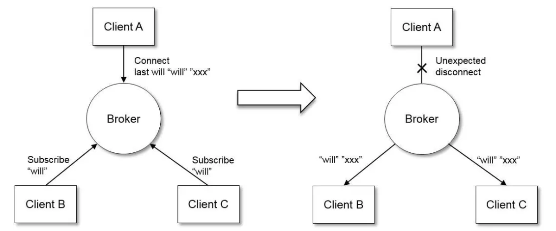 CONNECT:当客户端想要和服务器建立连接时,需要发送一条CONNECT消息给服务器,消息内包含自己的用户名、密码等信息,服务器鉴权通过后,和客户端建立连接。若双方想要断开连接,则需要遵循TCP协议的四次挥手规则,才能正常断开连接。客户端在发送CONNECT消息时,还可以指定“最后遗愿(last will)”消息,包括消息的主题和内容。当服务器检测到客户端异常断开连接时,就会自动发布这条“最后遗愿”消息。
