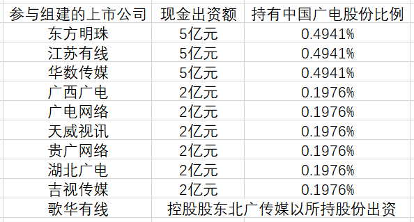 3、各省广电的出资方式: