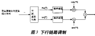 调制信号的码片速率为3.84Mcps,扩频过程产生的复值码片序列的调制为QPSK,具体的调制框图(如图3所示)。