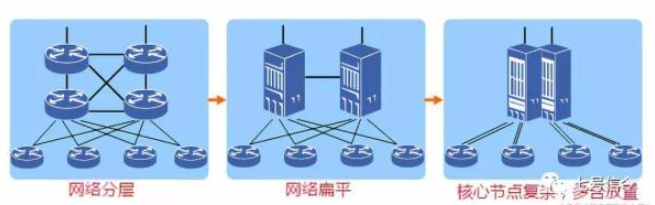网络层次分布式,即部署多个网络层次,通过逐层汇聚,减轻设备压力。