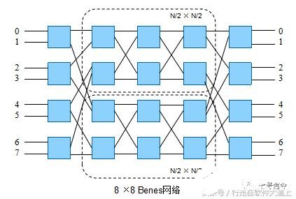 Benes属于可重排无阻塞网络。Benes使用方形交换单元(输入输出端口数相同)。一个典型的3级Benes N*N交换结构可以在每个输入端和每个输出端之间形成n个可能的通路。Benes输出可以扩展至任意奇数级。Benes的主要优点是实现简单,缺点是建立连接时需要重新选路,会增加数据传输时延。目前Cisco的CRS集群路由器系统采用此方案。
