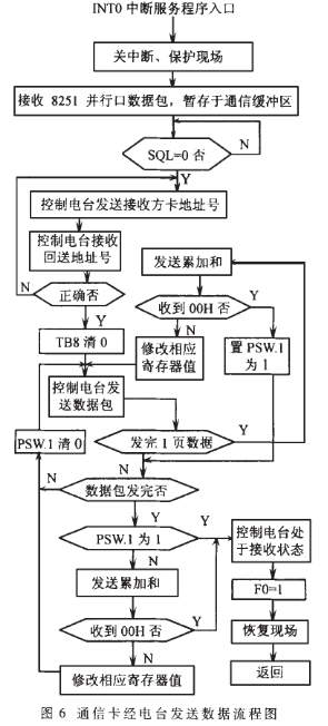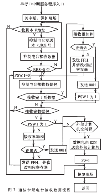 通信卡的整个工作过程由软件控制完成,流程图如图5、图6和图7所示。