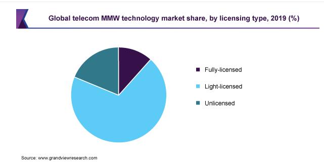 light-licensedspectrum光许可频谱主导市场,并在2019年占全球收入的69.35%以上。light-licensedspectrum的高市场份额归因于其成本较低且易于管理。政府已将E-band(70/80GHz)分配给公众使用,对light-licensed的要求很少。运营商可以迅速获得这些许可证。