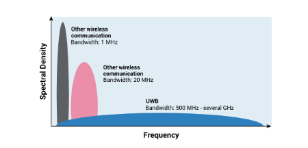 也就是说,别的无线通信技术都需要用载波实现信号传输,而 UWB 是直接通过信号脉冲实现信号传输,每个信号脉冲时间极短,只有纳秒级,那传输带宽可不就轻轻松松达到百兆了么?