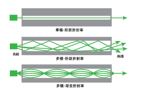 多模光纤的纤芯直径更大,容许不同模式的光在一根光纤上传输。