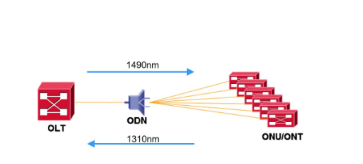 PON 就是家庭光纤宽带的那套系统。它的上行波长为 1310nm,下行波长为 1490nm。