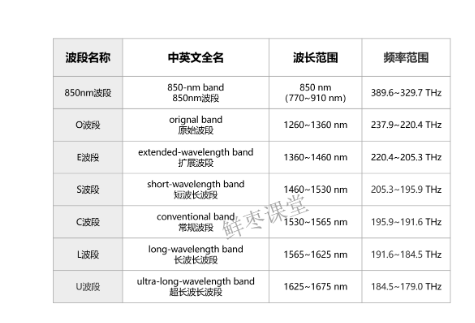 这个区域被进一步划分成了五个波段,分别是 O 波段,E 波段,S 波段,C 波段和 L 波段。