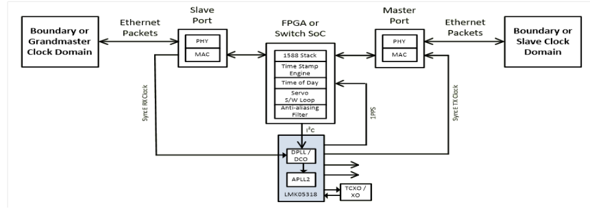用于 IEEE1588 和同步以太网的德州仪器的DPLL(数字 PLL)芯片LMK05318专为实现整个分组交换网络中的同步化而设计。对于 IEEE1588 应用,可将嵌入式 DCO(数控振荡器)用作低抖动合成器来完成 IEEE1588 时钟恢复算法。对于同步以太网应用,DPLL 符合EEC(同步以太网设备时钟)的ITU-T建议;这些器件还符合SONET/SDH同步要求。TI的DPLL可在IEEE1588 DCO与 SyncE 模式之间切换,并提供了下列功能:可选环路滤波器、延迟、不中断参考切换、相位斜率限制和时钟冗余。这些特点大大简化同步网络业务线卡时钟的设计。