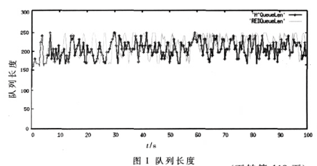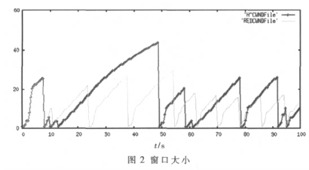 队列长度变化及窗口大小的变化见图1和图2,可以看出,所设计的拥塞控制器在大时滞环境下比RED算法获得了更稳定的队列变化;并且窗口变化平缓,链路利用率高,具有良好的稳定性和鲁棒性。