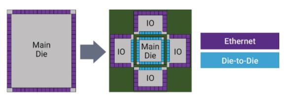 图 2:需要 die-to-die 连接的以太网交换机 SoC 的示例