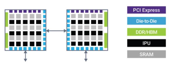 在 AI SoC 中,每个芯片都包含智能处理单元 (IPU) 和位于每个 IPU 附近的分布式 SRAM。在这种使用情况下,一个芯片中的 IPU 可能需要依赖于极低延迟的短距离 die-to-die 链路来访问另一个芯片的 SRAM 中的数据。