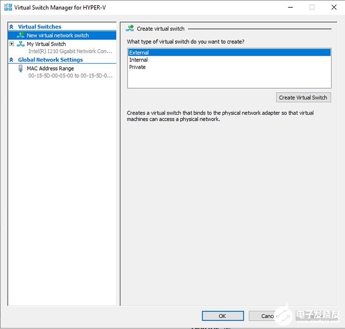 Hyper-V使管理员可以创建三种不同类型的虚拟交换机:外部、内部和专用。