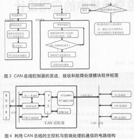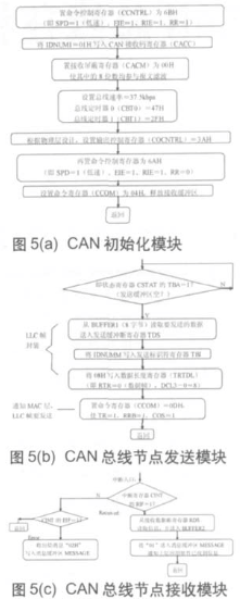 前端机CAN总线的初使化、发送及接收程序框图如图5所示。