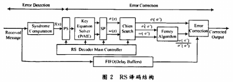 由图2可见,RS解码主要分为错误检测和错误纠正两个步骤。具体可分为: