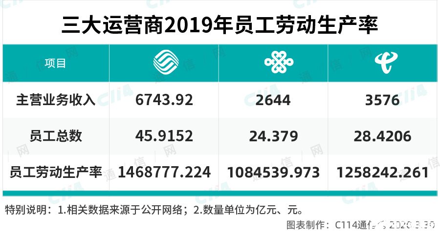 基于在用户规模方面的巨大优势,中国移动的营收规模自然也是最大的,而且超过了中国联通和中国电信的规模之和。虽然主营业务收入规模最大,但是中国移动的雇员薪酬占主营收入比重确实业内最低的。因此,可以说中国移动用更少的人工成本获得了更多的营业收入,毫无疑问其劳动生产效率也是最高的。