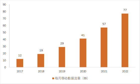 在全球范围内,互联网流量保持快速增长。Cisco VNI报告显示,全球移动数据流量将呈现持续快速增长,到2022年,移动数据流量将增加至77EB/月,2017年到2022年复合增速将达到46%。Cisco另一研究则显示,全球数据中心IP流量同样将保持快速增长,2021年有望达到20.6ZB。