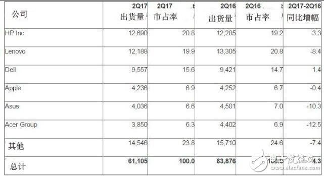 电子发烧友早八点讯:市场研究机构Gartner周三发布的初步报告显示,今年第二季度全球PC出货总量为6110万台,较上年同期下滑4.3%。