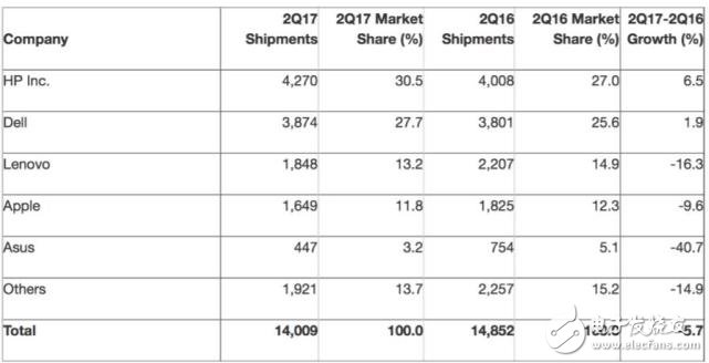 戴尔则现实连续第五个季度全球PC出货量同比增长,其在今年第二季度同比增长1.4%。戴尔已将PC提升为优先考虑的战略业务。在全球PC厂商前三强中,戴尔是唯一一家能够通过旗下公司提供一整套企业所需IT方案的制造商。