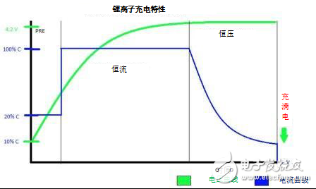 电池在充电时通常经历两个阶段:恒定电流(CC)和恒定电压(CV)。图1所示为4.2V锂离子(Li-ion)电池的典型充电曲线。当大部分能量从充电器传输到电池时,CC大致用于充电的前67%时间。在剩余充电时间的最后33%内,则是恒定电压,以充分充电并保持电充满。考虑到放电电流,并保持电池电压完全充电,一些充电器在CV期间泵送小电流(也称为涓流充电)。电池完全充电所需的时间取决于其容量和最大允许充电电流,是电池化学和环境温度的函数。例如,如果您有一个容量为3000mAh,充电率为0.8C的锂离子电池(其中C表示在一小时内为电池充电所需的电流,这是电池制造商建议延长电池寿命的默认电量),电池需要两到三个小时才能完全充满电。