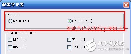芯片中的配置参数需要手动修改,不能单纯的加载文件后直接进行烧录,如果不按照正确的规则设置参数,必然会导致芯片无法正常运行。在SPI Flash的芯片烧录时经常遇到这类问题,类似于”QE”位必须使能,如下图。