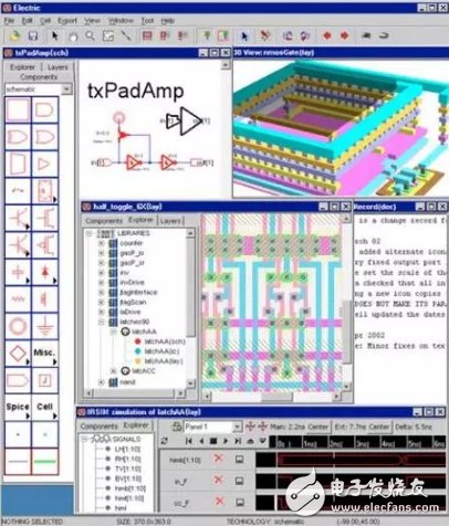 Electric是一个功能强大的电路设计软件,支持模拟和数字设计,包括MOS(NMOS/ CMOS),Bipolar,甚至pcb;支持IC排版、逻辑模拟、FPGA构架、设计/电气规则检查等等。