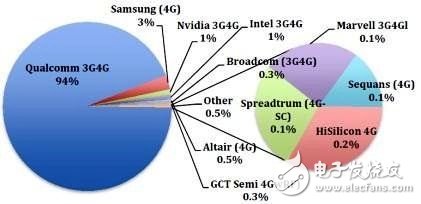 无论我们用哪种方式来切分LTE市场,高通在手机芯片领域的地位都难以动摇;市场研究机构Forward Concepts总裁Will Strauss表示:「就算有一些2014年才进入市场的新竞争者,高通在多模LTE芯片市场的占有率仍超过95%。」另一家市场研究机构Strategy Analytics的报告则指出,三星2014年第一季在LTE基带芯片市场排名第四,全球市占率(营收)仅1.7%。