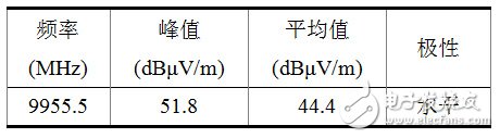改善前的XFP模块电磁骚扰场强在水平方向的测试结果如图4和表2所示: