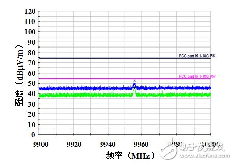 由以上测试数据可见,改善后的电磁骚扰场强最大峰值下降了近2dBμV/m,平均值下降了近6dBμV/m。