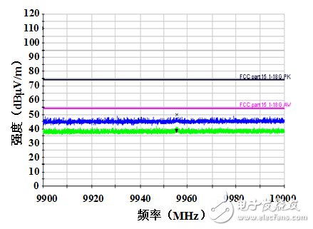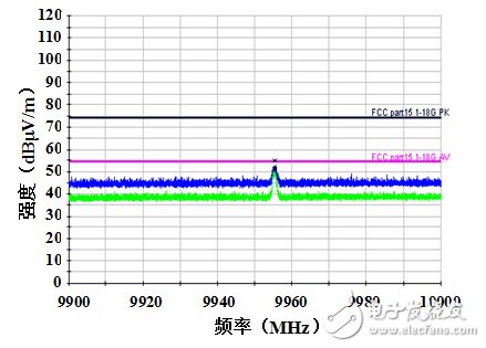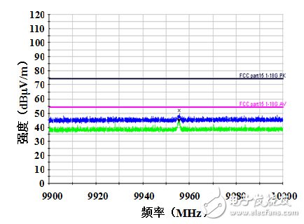 由以上测试数据可见,改善后的电磁骚扰场强最大峰值下降了近2dBμV/m,平均值下降了近6dBμV/m。