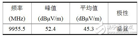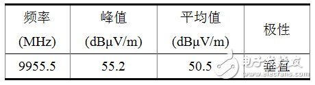 改善前的XFP模块电磁骚扰场强在水平方向的测试结果如图4和表2所示: