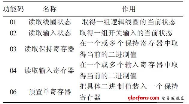 标准的Modbus 口是使用RS??232C 兼容串行接口, 它定义了连接口的针脚、电缆、信号位、传输波特率、奇偶校验, 控制器能直接或经由Mo dem 组网. 控制器通信使用主! 从技术, 即仅一设备( 主设备) 能初始化传输( 查询) , 其它设备( 从设备) 根据主设备查询提供的数据作出相应反应。