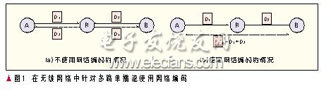 网络编码(NC)使得网络节点既实现路由功能又实现编码功能,已被证明是可以逼近网络容量理论传输极限的有效方法。2000年,R.Ahlswede等人发表了文章“Network informatiON flow”证明了组播网络在网络编码传输模式下可以达到极大流容量理论上限。网络编码刚提出的几年,研究工作主要集中在网络编码的理论以及构造和应用等方面。从2005年后,许多国外学者开始研究无线网络中的网络编码,然而网络编码在无线网络(包括无线自组织网络、无线Mesh网络、无线传感器网络)的研究和应用还处于起步的阶段。