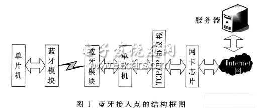 基于蓝牙的无线接入点就是实现蓝牙无线移动终端接入Internet的网络接口,其主要功能是通过蓝牙无线传输技术,使蓝牙设备接入Internet网,实现一个或数个蓝牙设备的无线上网功能。