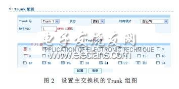 要达到更高的数据传输率,则需要更换传输媒介,使用千兆光纤或升级成为千兆以太网,这样虽能在带宽上达到千兆,但成本却非常昂贵(可能连交换机也需要一起更换),根本不适合低成本的中小企业和学校使用。而使用Trunk技术,把4个端口捆绑在一起可以达到800 MHz的带宽,较好地解决了成本和性能的矛盾。