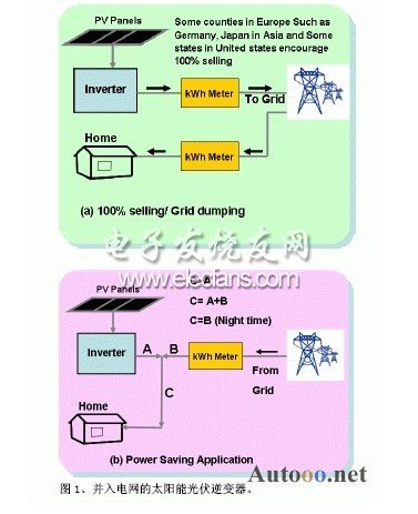 一个典型的太阳能发电系统由太阳能光伏电池板阵列和逆变器组成。光伏电池板将太阳光线以直流电压的形式直接转化为电能;逆变器将光伏电池板产生的直流电压转换成可送至电网的交流电压。因此,逆变器已成为并网光伏系统的核心部件。
