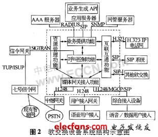 图2是软交换设备系统结构示意图。图中虚线围框表示软交换设备实体。