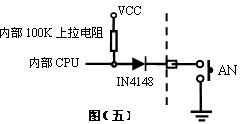 JB35G的第11脚、12脚、14脚、18脚、19脚采用电平由高电平跳变成低电平的下降沿作为报警触发条件,这几个端口适合接振动传感器、微波传感器、烟雾传感器、煤气传感器、紧急按钮等,连接见图(五)。
