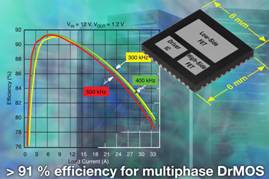 通过集成驱动IC和功率MOSFET,SiC762CD减少了功率损耗和与高频分立功率级相关的寄生阻抗效应。设计者可以采用高频开关以改善瞬态响应,节省输出滤波器的成本,在多相Vcore应用中实现尽可能高的效率密度。