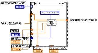 滤波部分是本程序的核心部分。选用滤波速度快,对相位没有要求的IIR滤波器,本程序采用Butterworth滤波器和Chebyshev滤波器。巴特沃斯滤波器拥有最平滑的频率响应,在截断频率以外,频率响应单调下降。在通带中是理想的单位响应,在阻带中响应为零,过渡带的陡峭成度正比于滤波器的阶数,所以通过提高阶数可以明显的提高滤波效果。并且可以选择低通滤波,高通滤波,带通滤波或者带阻滤波,用户可以根据自己的滤波要求选择合适的滤波模式。这个功能的实现是用一个case选择结构完成的。