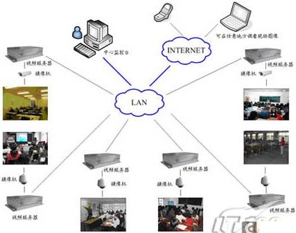前端系统由每个考场的2台摄像机组成,将摄像机分别安装在教室的前后,装在前面的摄像机能监控所有考生的正面信息和教室前、后的监考老师,将现场的音视频等数据进行编码,然后通过网络传输到后端管理设备。后面的摄像机应该具备高倍变焦功能,这样的话,就能拍摄考场内的特写镜头,使细微的变化都能呈现在画面中。