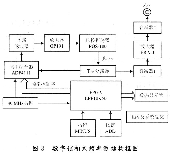 根据数字锁相式频率源设计方案,设计的硬件结构如图3所示。