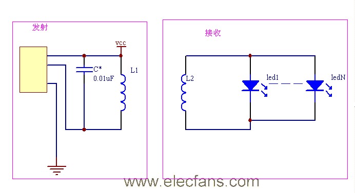 用一个发射线圈2*3cm,接收用了同样大小的线圈,距离在几毫米时效率是58%左右,随着距离的增加效率很快降低,达到10公分的时候效率才30%.功率我先做的是5W,但仅用了20只LED,所以我估计功率做到3W足够了吧.有没有在业余时间里做过这种小玩艺的,过来交流一下所得.这种传输方式,可能以后会有点用呢,可以做成手机充电、全密封产品里的电池充电。