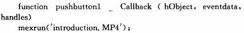 首先,可以通过调用混合编程实现的mexrun.dll库文件打开help文档、MP3文件和MP4文件。以video按钮为例,打开它的属性编辑器可以看到其对应的Tag属性pushbuttonl,在其回调函数中加入如下代码。video按钮打开后是关于软件包使用说明的一段简单视频。