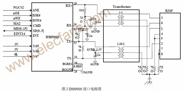 DM9000 是一款高性价比以太网控制芯片,具有通用处理接口以太网MAC 控制器,能与10Base-T 的UTP3/4/5 和100Base-T 的UTP5 接口连接,满足高速接入网要求,也支持通过MII 接口与其它MII 接口的收发器互联。