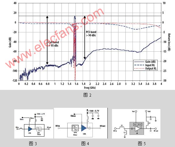 电子环境更恶劣。GPS 接收和手机功放在同一块板上,对1.575GHz GPS信号而言其带外信号主要有:900MHz,1800MHz 的GSM 功放;1800—1900MHz 的PCS功放;2.4GHz的 WLAN,蓝牙; 以及2.5—2.7GHz的WiMAX。这些信号虽不会同时存在,但每个都很强,对GPS接收性能都有明显影响。实验表明:-15dBm的带外信号,会引起GPS 低噪放增益下降1dB. 因此,选择手机GPS 低噪放时不仅要看其自身的噪声系数和增益,更要关注其带外衰减指标,这对GPS接收机的捕捉能力,跟踪性能和定位精度,乃至能否正常工作至关重要。