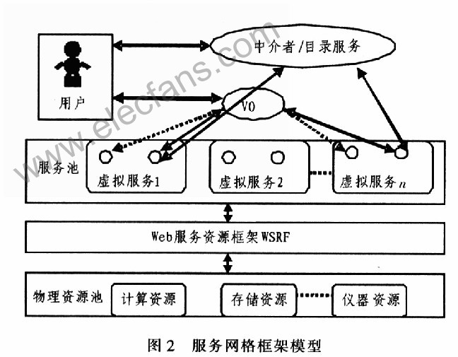 2)网格核心中间件WSRF 实现与资源池和服务池的双向通讯,通过网格核心中间件Web服务资源框架(WS-Re-source Framework,WSRF),资源可以被包装成服务或者将服务部署到相应的资源上。
