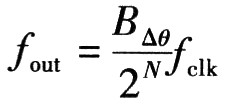 只要对相位的量化值进行累加运算,就可得到正弦信号的当前相位值;而用于累加的相位增量量化值B△θ决定了信号的输出频率fout,并呈现简单的线性关系。直接数字频率合成技术就是根据上述原理而设计的数字控制频率合成器。