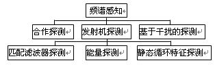 总的来讲,频谱感知技术可以归纳为对发射机探测,合作探测和基于干扰的探测,如图1所示。